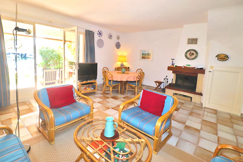 - a beautiful living room with fireplace, opening onto a large loggia (17m2) with cupboard, extended by a terrace and garden