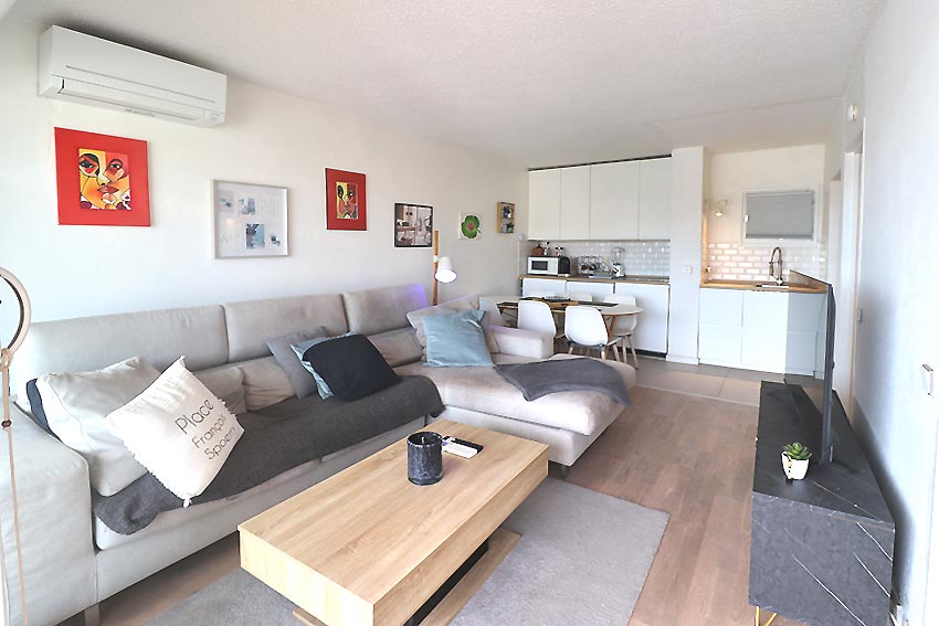 - un séjour donnant sur une loggia offrant une belle vue sur les canaux