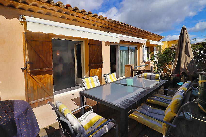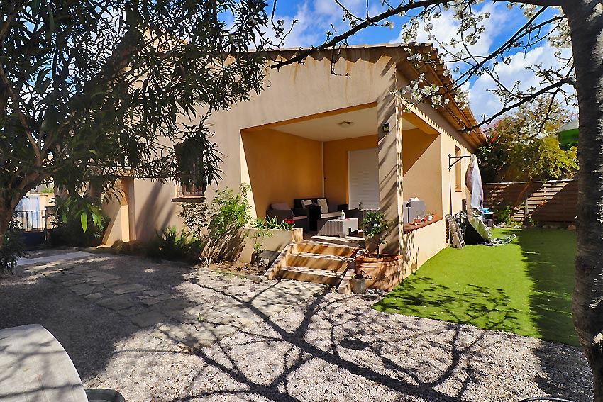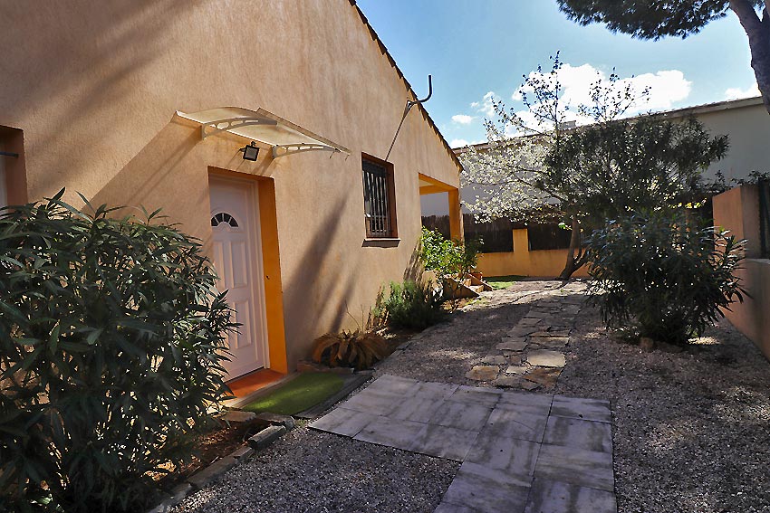 - une terrasse et un jardin à l'entrée, fermés par un portail coulissant et un portillon.