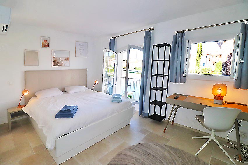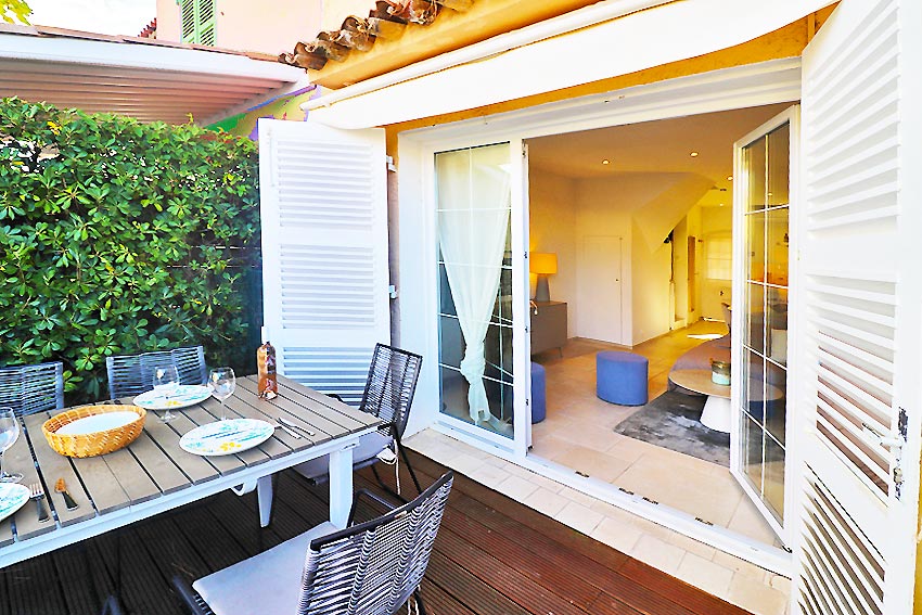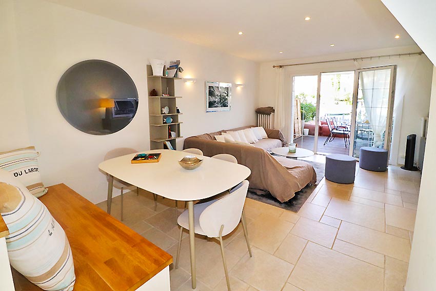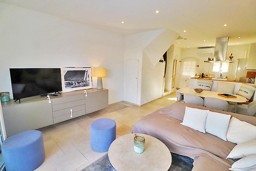 - un beau séjour ouvrant sur une terrasse et un quai avec