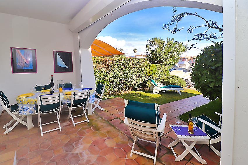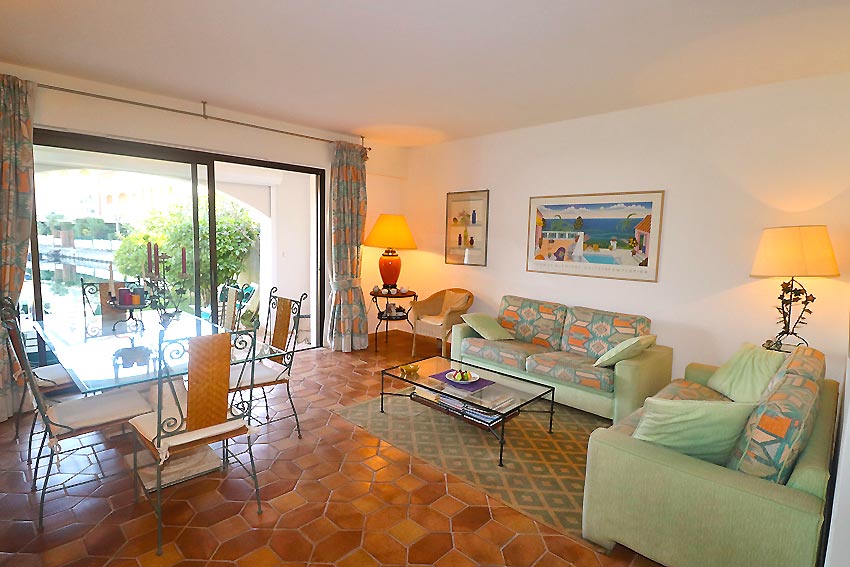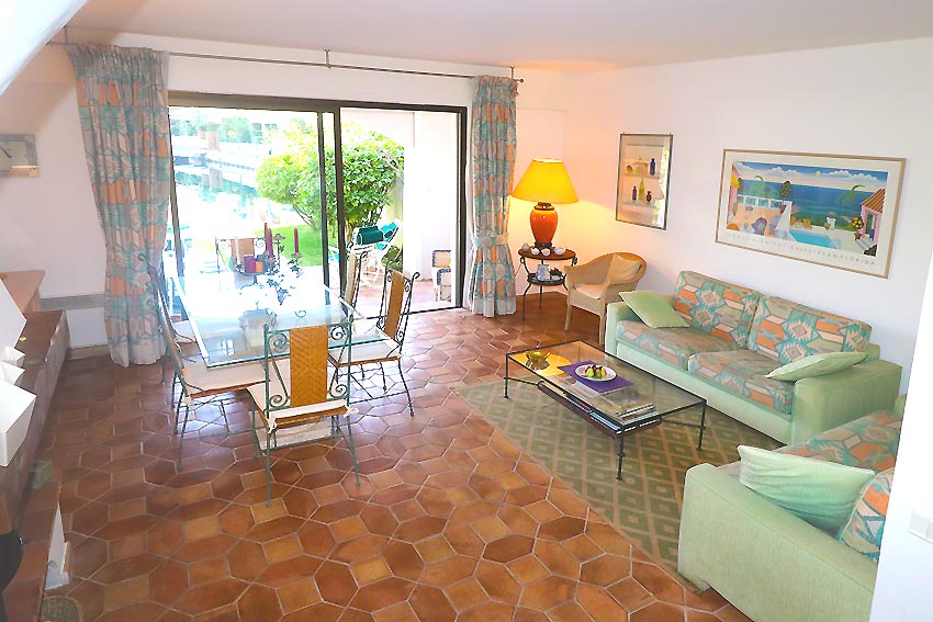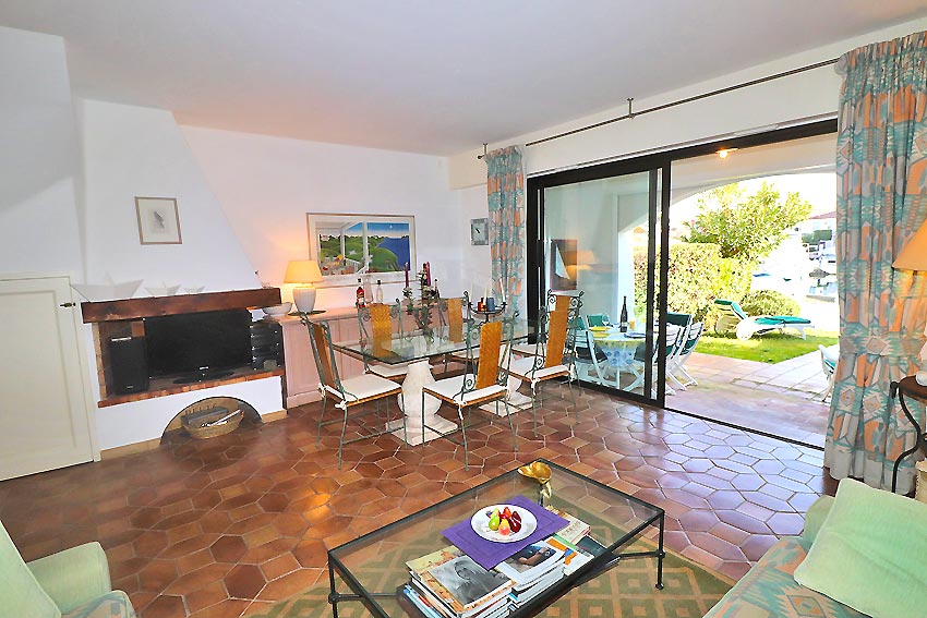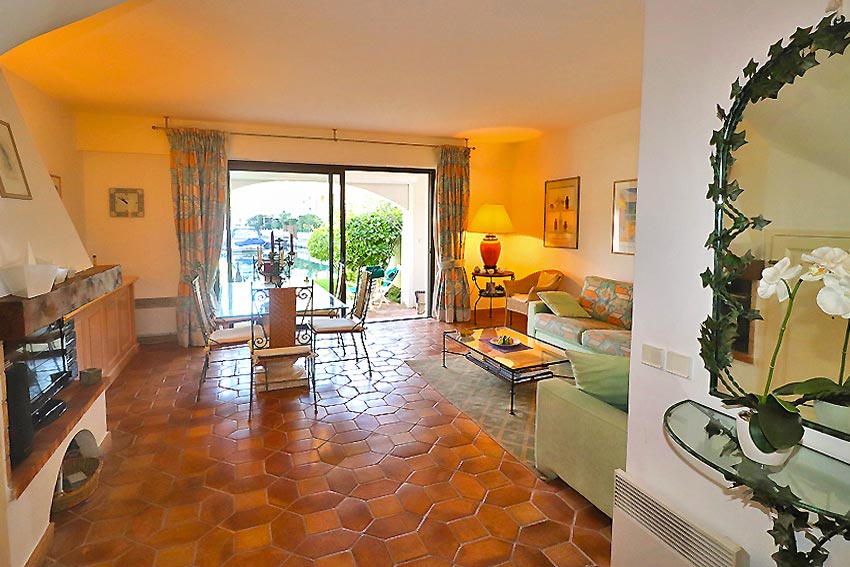 - a beautiful living room with fireplace, opening onto a loggia and a pleasant canal-side garden