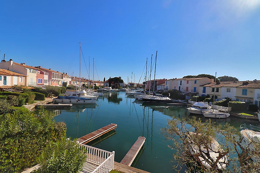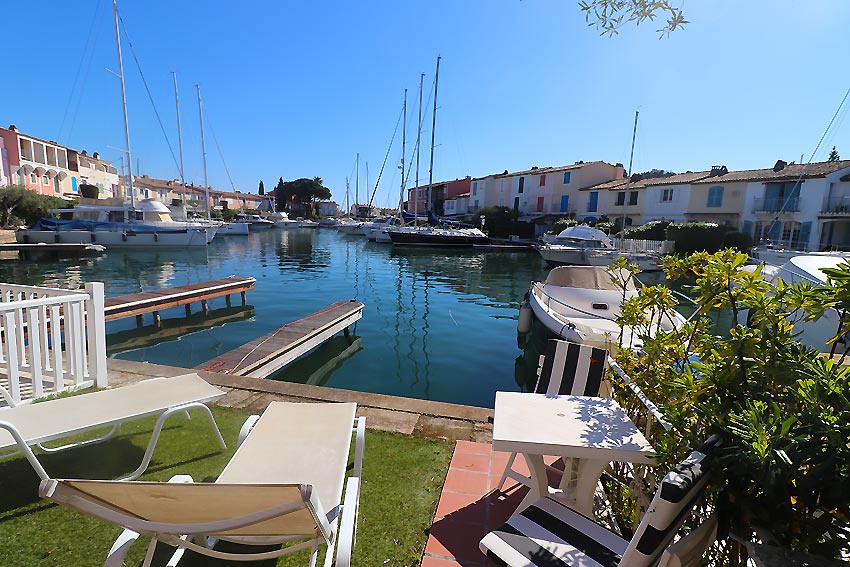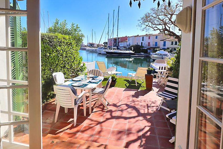 - a beautiful living room opening onto a terrace and a quay with