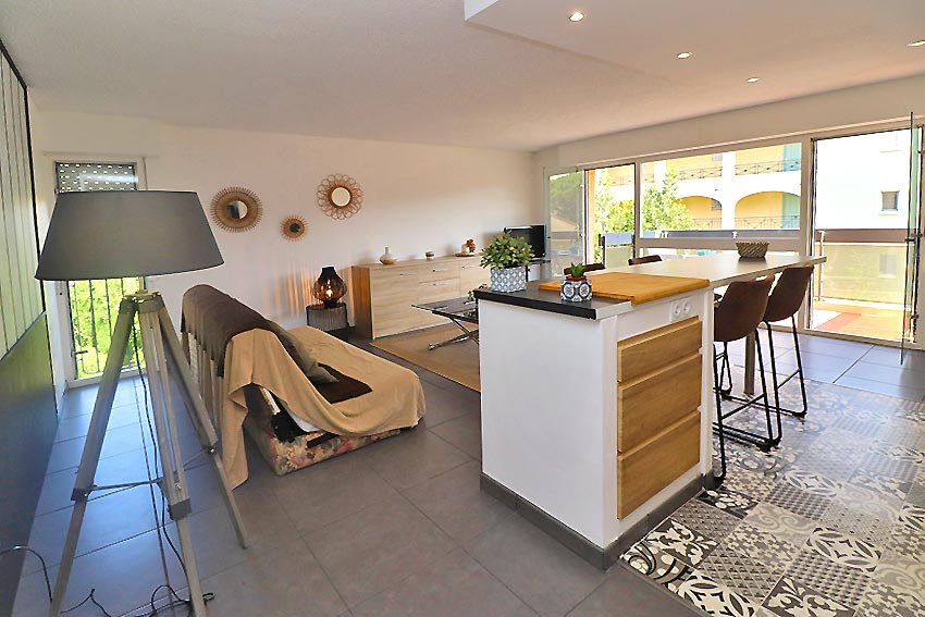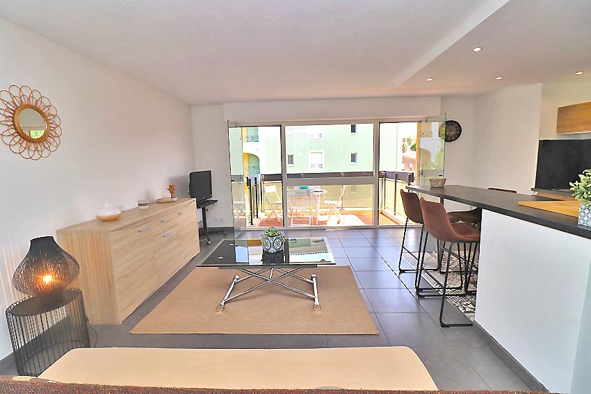 - a living room with access to a terrace