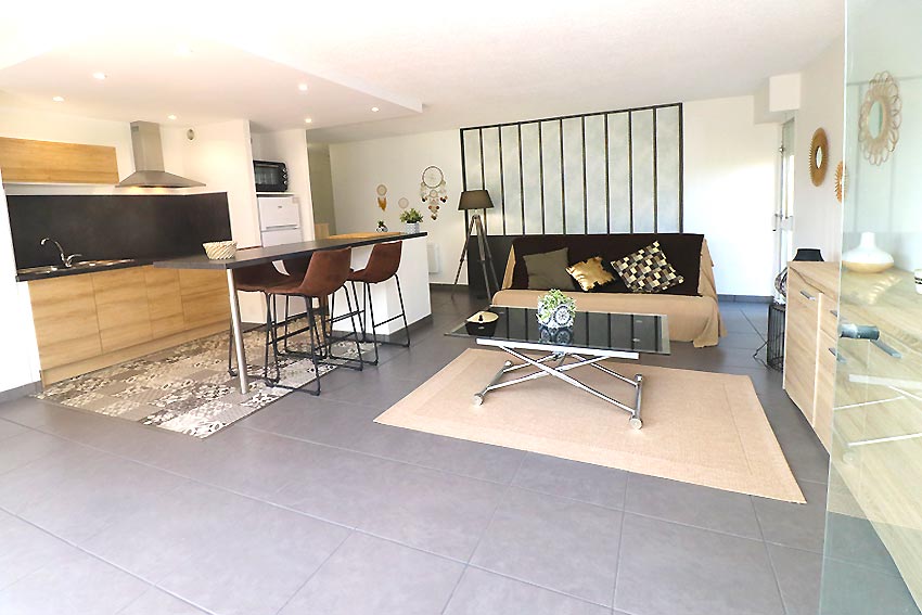 - an open-plan fitted and equipped kitchen