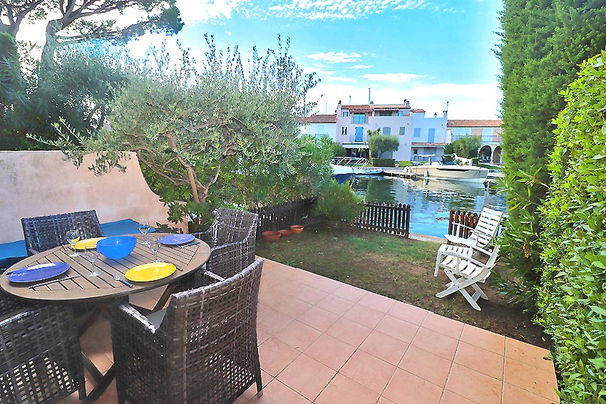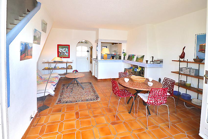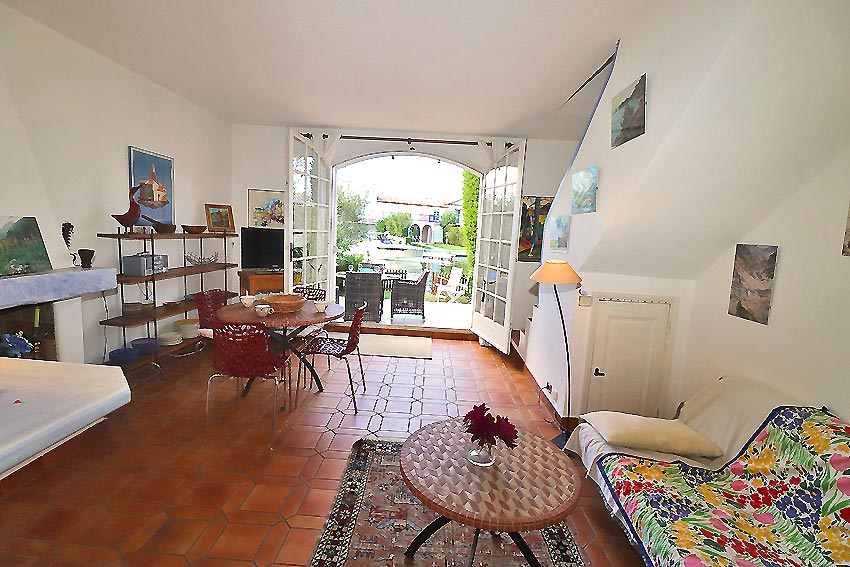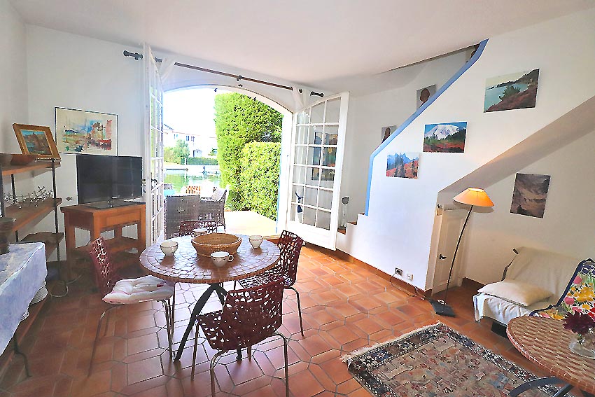 - un séjour, avec cheminée, ouvrant sur un quai-terrasse avec jouissance d'un amarrage de 10,80x5,03m au quai et 3,80m à la chaine