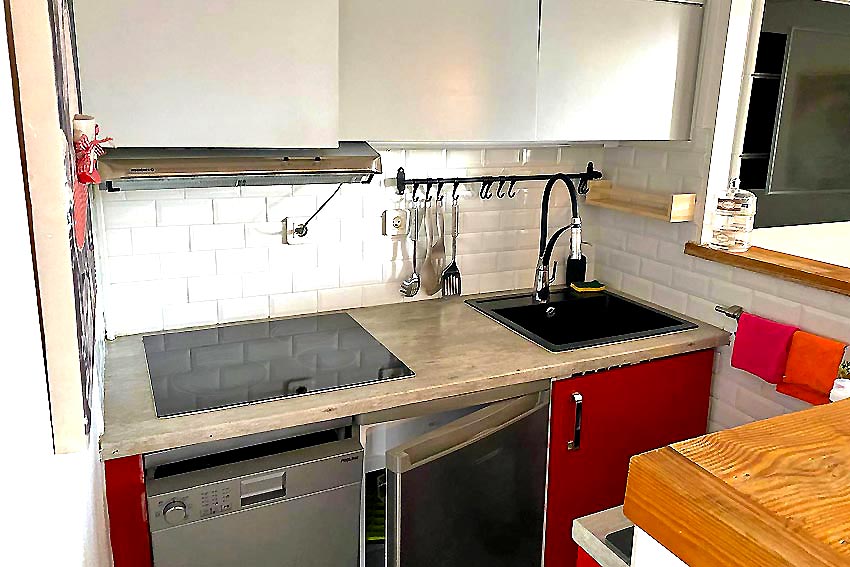 - une cuisine ouverte aménagée et équipée